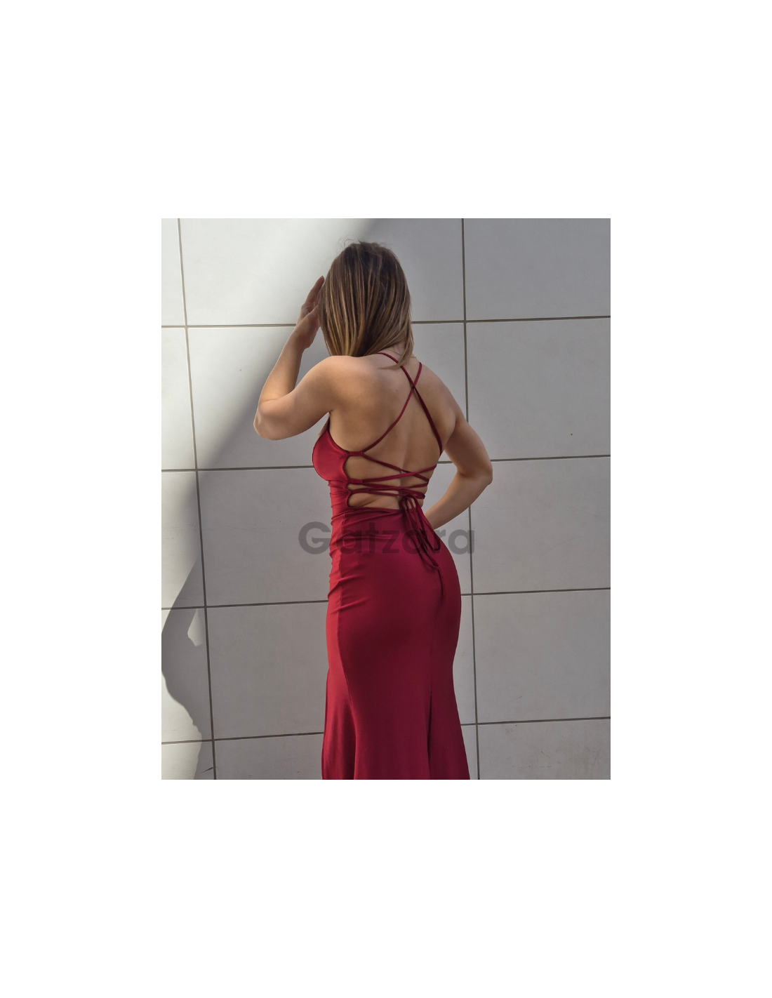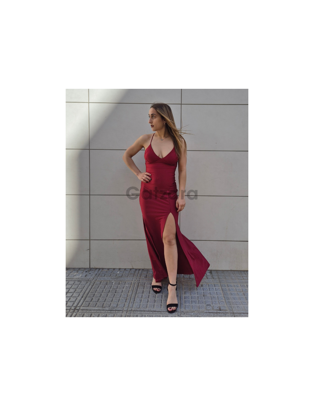 Vestido largo cuerpo sirena. Copas internas y abertura en la falda. Corte sencillo pero elegante.