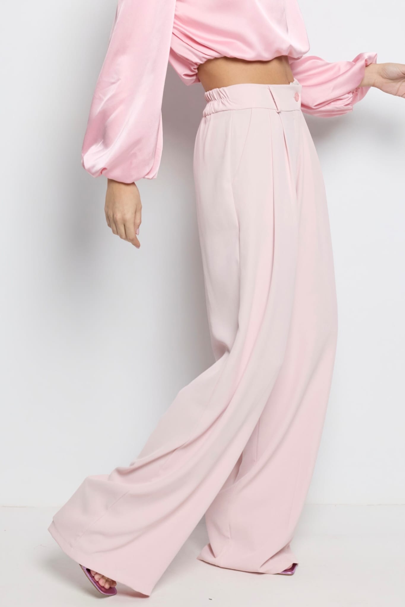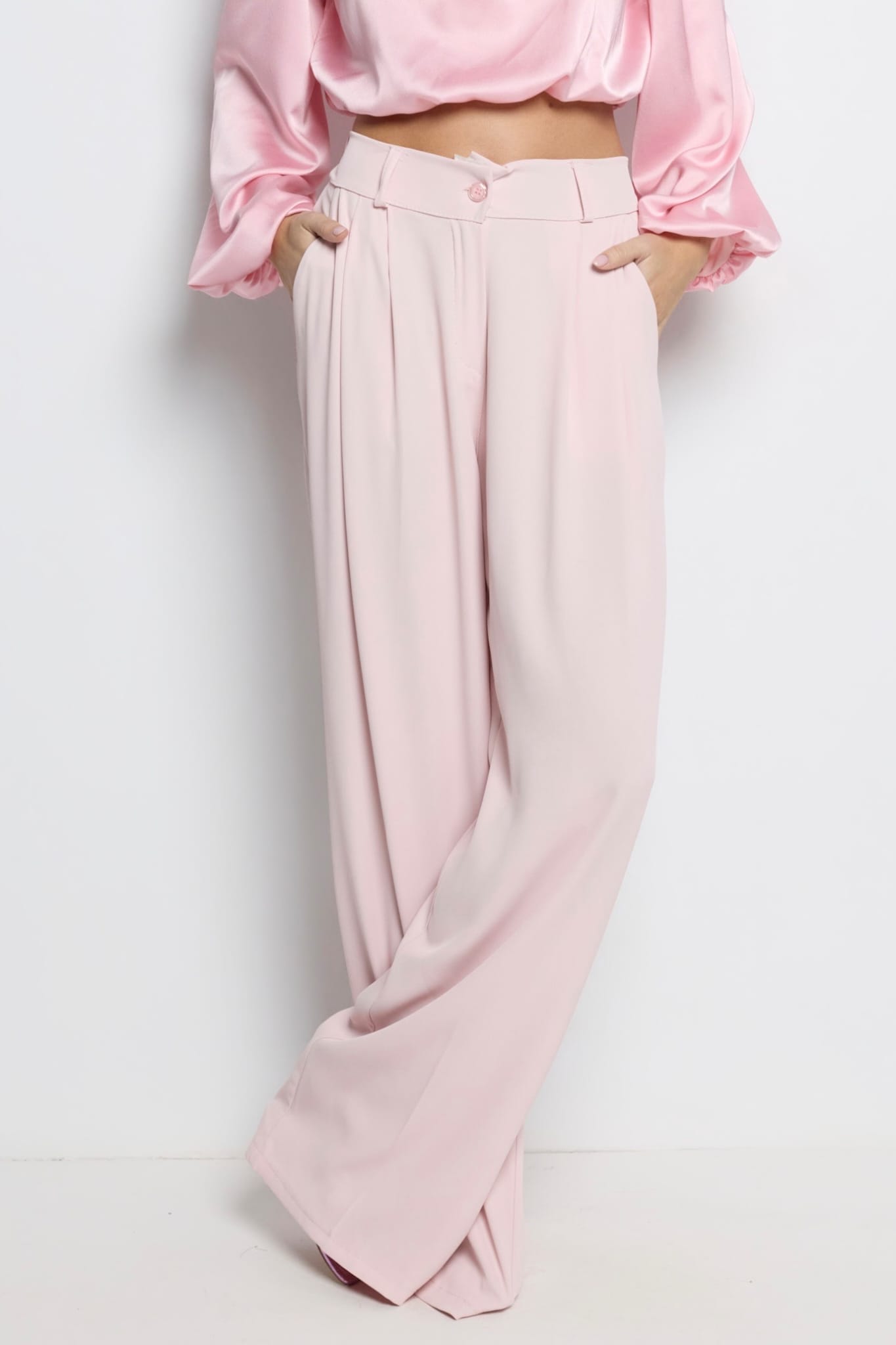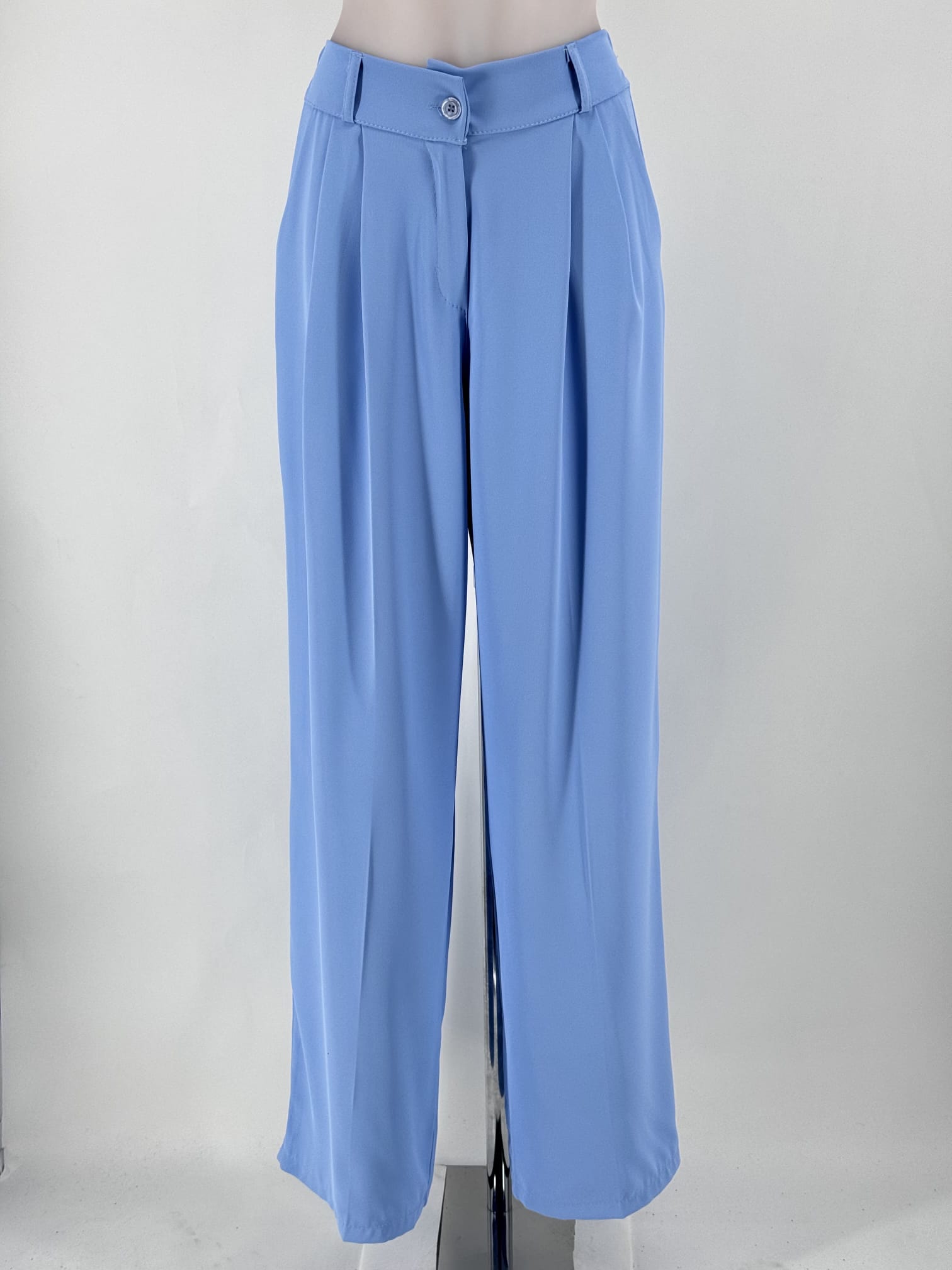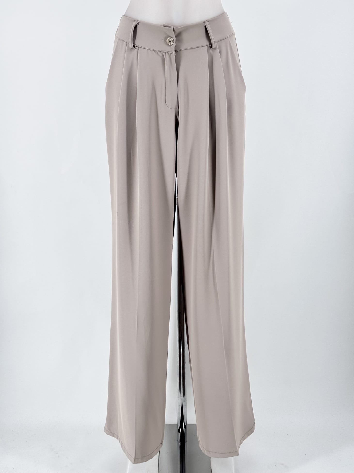 Pantalon crep tejido fluido con pinzas y bolsillos.cierre con boton y cremallera .