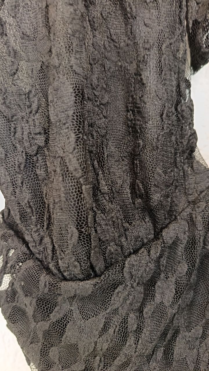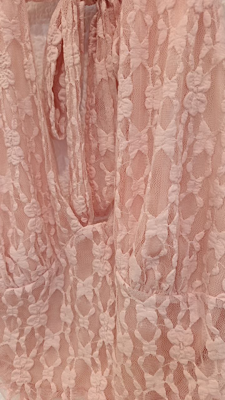 Top de encaje con forro al tono. Se ata al cuello. Fruncidos laterales.